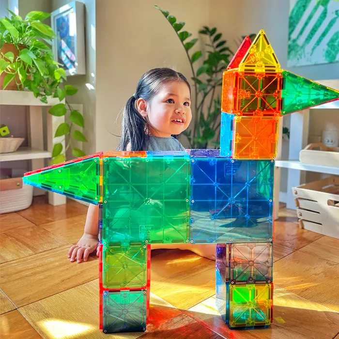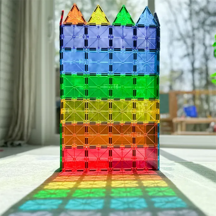 Made from the same food-grade plastic used in baby bottles, with magnets permanently sealed inside (not glued, but sealed with ultrasonic technology because we know toddlers test everything). The colors are vibrant and translucent, so when your child holds them up to the window, you get those magical rainbow light moments that make you grab your phone.