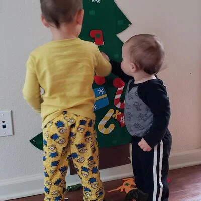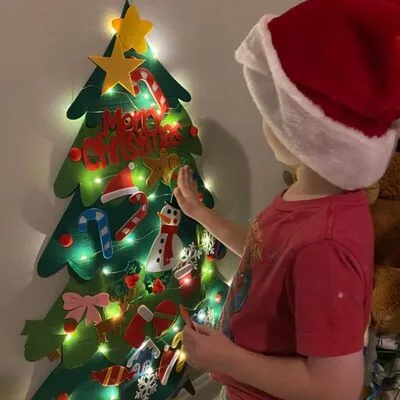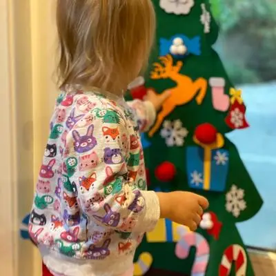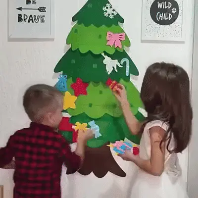 Help your child get started by showing them how to press the ornaments onto the tree and gently peel them back off to rearrange. When the season ends, fold the tree flat for storage. It will be ready to use again next year.